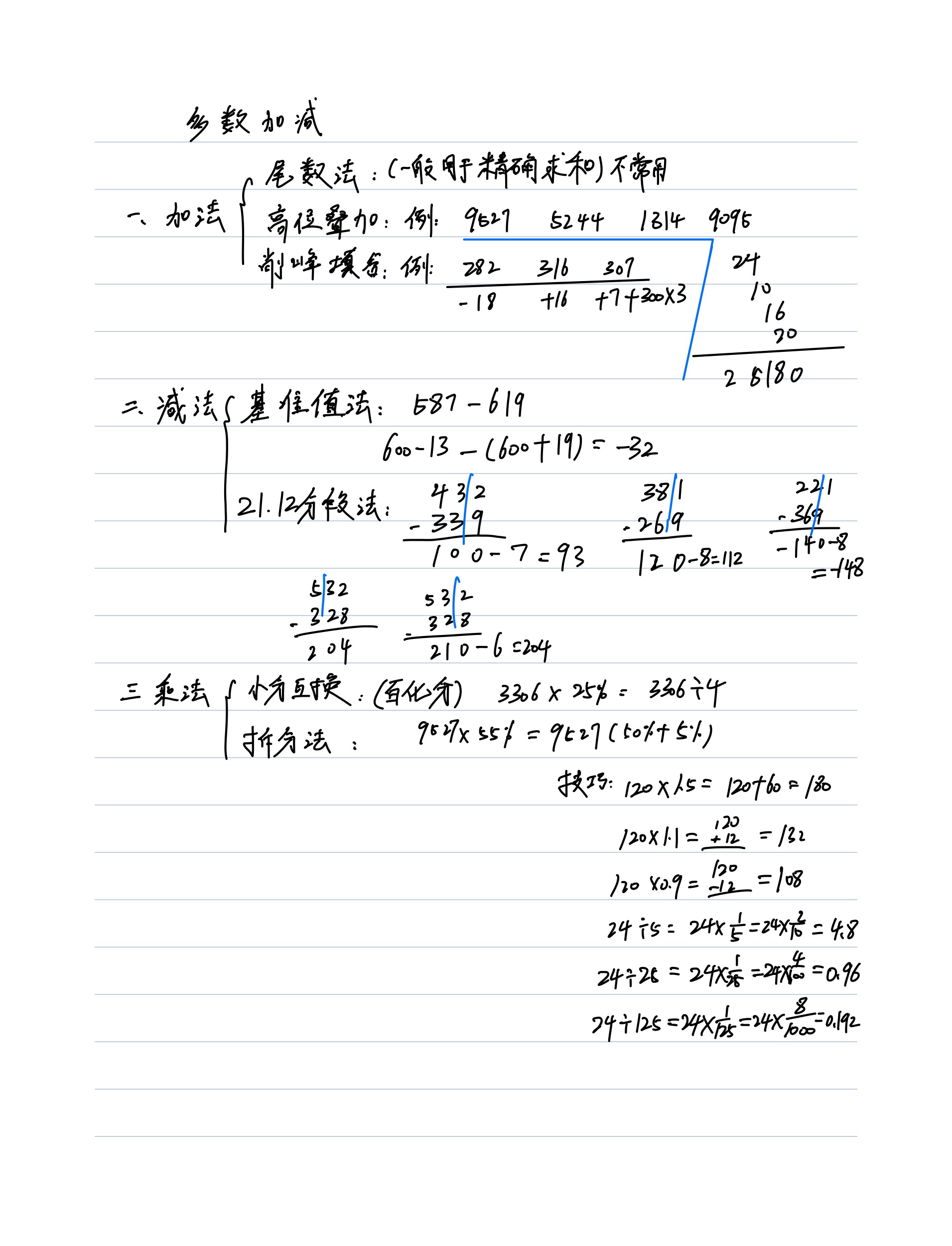 1、截位直除法:一步除法只截分母,多步除法分子分母都截,选项差距大(首位均不同,首位相同第二位数字之差大于首位)截取两位,选项差距小(首位相同第二位数字之差小于等于首位)截取三位。
